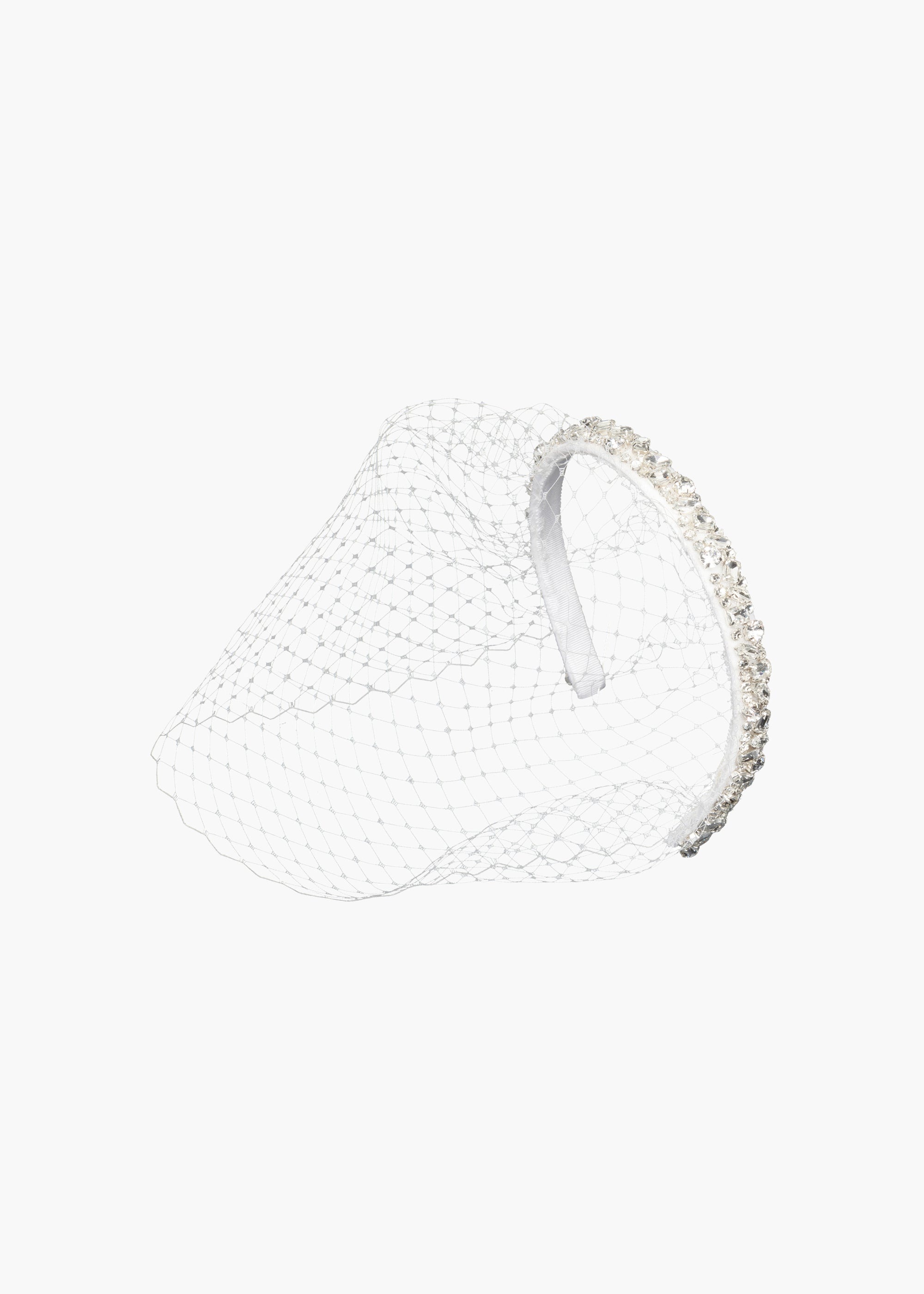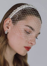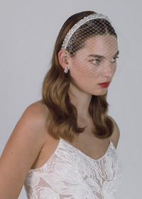 The Essen Voilette builds upon the tried-and-true foundation of our best-selling Essen Headband, adding a classic Jennifer Behr voilette for an unstoppable combination. The headband features dozens of hand-embroidered crystals, creating a face-framing halo of sparkle. The French veiling is expertly draped to float gracefully before the visage. Material The Essen Voilette is made in New York of hand embellished crystals, lined with grosgrain to promote hair health. We recommend treating this voilette as you would a piece of jewelry, and storing in the dust bag when not in use. Avoid contact with water, perfume, and other chemicals, including hairspray, which should be used before placement in the hair.