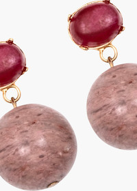 A foray into demi-fine jewelry, the Everly Earrings are crafted with semi-precious gemstones, including garnet, rhodonite, and even lapis lazuli, which has historically been prized for its otherwordly beauty, claiming status in Renaissance Europe as the most expensive pigment available. The straightforward design is enhanced by the playful cabochon stones, which call to mind glistening candy gumdrops. Made by hand in New York, the nearly invisible 18-karat gold-plated setting is designed to showcase each gemstone's distinct coloring, which makes each pair one-of-a-kind. Dimensions: 1.25" Material The Everly Earrings are made by hand in New York from natural semi-precious stones and 18K gold plated brass. All stones have natural variances in color and markings that make each one unique. They have a surgical-steel post, are nickel-free and safe for sensitive skin. We recommend storing earrings in their dust bag while not in use, and avoiding contact with water, perfume, hairspray, and other chemicals.