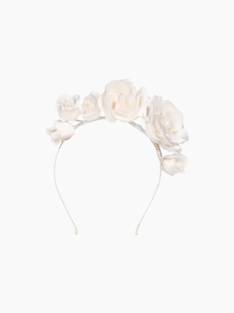 Featuring a duo of orchids on a thin silk-wrapped headband base, the Orchid Vine Headband celebrates one of the most iconic flowers throughout our collections, created in a time-intensive, multi-step process to achieve the dynamic finished look. To form these flowers, silk duchesse satin is hand-pressed in New York using antique tools, and hand-wired to create the impossibly sculptural shape. Layer with the Orchid Hairpin for maximum impact. Dimensions: 1/8in Width Headband Material The Orchid Vine headband is crafted in New York from hand-made silk duchesse satin orchid vine floral motifs on a silk ribbon wrapped flexible steel base for weightless comfort. We recommend storing headbands in their dust bag while not in use. Avoid contact with water, perfume, and other chemicals, including hairspray, which should be used only before placement in the hair.