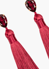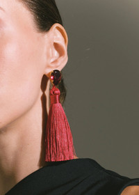 The Francine Earrings reference Art Deco interiors, with lush tassels and rich crystal accents for supreme drama. Made by hand in New York, satin tassels are suspended from pear-cut Austrian crystals. Despite their shoulder-grazing length and noteworthy movement, these earrings are exceptionally lightweight and comfortable to wear. Dimensions: 4.25" length Material The Francine Earrings are made by hand in New York from Austrian crystals, hand-made silk tassel dangles, and 18k gold plated brass. They have a surgical-steel post, are nickel-free and safe for sensitive skin. We recommend storing earrings in their dust bag while not in use, and avoiding contact with water, perfume, hairspray, and other chemicals.