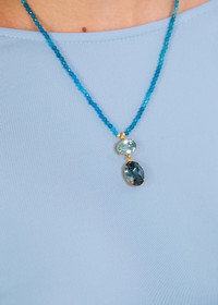 The Freya Necklace is strung with natural semi-precious gemstones and finished with an Austrian crystal pendant, chosen to complement the stones' natural hue. Made by hand in New York, it's finished with an 18-karat gold-plated lobster clasp, with an extender chain to ensure the length hits perfectly with every neckline. The Freya Necklace can be paired with our matching Dara Earrings, or layered with other semi-precious necklaces in our collection. Dimensions: Pendant with jumpring 1.5""x0.5", 21" length Material The Freya Necklace is handmade in New York of faceted semiprecious gemstones with an Austrian crystal pendant and 18K gold plated lobster clasp and two inch extender chain. All stones have natural variances in color and markings that make each one unique. We recommend storing necklaces in their dust bag while not in use, and avoiding contact with water, perfume, hairspray, and other chemicals.