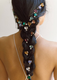 The Gemma Bobby Pin is inspired by the rich opulence of Renaissance art, unabashedly embracing jewel tones. Made of varying combinations of colorful Swarovski crystals and smaller complimentary stones, these gems are pure candy-colored fun. The Gemma Bobby Pin can be worn solo for a more subdued look, but we love creating drama with multiple colors stacked on, and mixing with the Perla Bobby Pins for a look fit for royalty. Dimensions: 2.25 x 0.75 x 0.5 inches Weight: 6g Material The Gemma Bobby Pin is made in New York of Swarovski crystal on a durable steel bobby pin, designed to stay firmly in place, once other pins have the hairstyle securely fastened. We recommend treating each pin as you would a piece of jewelry, and storing in the dust bag when not in use. Avoid contact with water, perfume, and other chemicals, including hairspray, which should be used before placement in the hair.