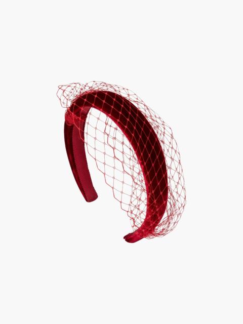 The Gigi Voilette blends modern polish with a touch of vintage allure. A silk-velvet–wrapped, padded headband provides a plush foundation, topped with a sculptural nylon net veil that adds subtle drama and dimension. Lightweight and flexible for a comfortable fit, it’s an effortless way to elevate any look—equally striking for evening, events, or whenever you want a hint of mystery. Dimensions: 1.5" width 0.25" height Material The Gigi Voilette Headband is made in New York from nylon netting on a silk velvet wrapped padded headband. We recommend storing headbands in their dust bag while not in use. Avoid contact with water, perfume, and other chemicals, including hairspray, which should be used only before placement in the hair.