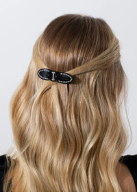 Made in France between the 1920s and 1950s, the one-of-a-kind Gladys Vintage French Barrette speaks to the quality of French hair accessories from this era. The cellulose acetate features inset Austrian crystal, emphasizing the graphic shape. It's finished with an automatic French barrette clasp for easy and secure placement in any hairstyle. Material The Gladys Vintage French Barrette is made by hand in France from inset Austrian crystal and vintage cellulose acetate, with a French barrette closure. We recommend treating this clip as you would a piece of jewelry, and storing in the dust bag when not in use. Avoid contact with water, perfume, and other chemicals, including hairspray, which should be used before placement in the hair.