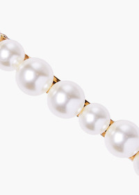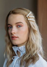 The Gretel Barrette feels timeless and playful at once, thanks to the irregular arrangement of pearls in varying sizes. Not all barrettes are created equally: each of these Swarovski pearls are individually set by hand in our Brooklyn studio. We love layering barrettes in the hair, the same way you might layer necklaces; the Gretel Barrette stacks well with the Gigi Barrette and Gia Barrette. Dimensions: 2.5 inches; Weight: 17g. Material The Gretel Barrette is handmade in New York of Swarovski pearls with a steel French barrette closure. We recommend treating each pin as you would a piece of jewelry, and storing in the dust bag when not in use. Avoid contact with water, perfume, and other chemicals, including hairspray, which should be used before placement in the hair.