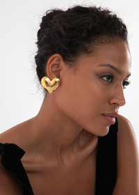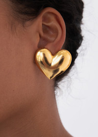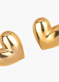 Chic with a touch of kitsch, the Hart Earrings are our current favorites for simple, everyday charm. Handmade in New York from 18k gold plated brass, these sweet studs feature oversized golden hearts that add a cutesy, touch to any look. Pair them with the gold Hart Ponywrap for romance all around. Material The Hart Earring is a stud earring with a surgical-steel post. Our earrings are nickel-free and safe for sensitive skin. These earrings are made by hand in New York, from 18K gold plated brass. We recommend storing earrings in their dust bag while not in use, and avoiding contact with water, perfume, hairspray, and other chemicals.