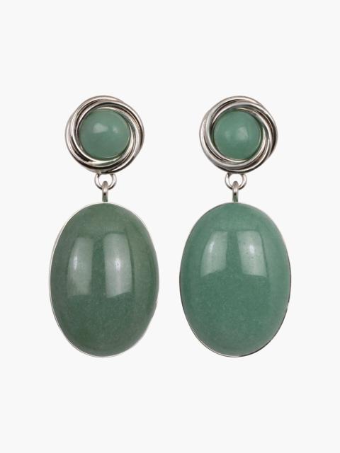 The Hattie Earrings blur the line between fine and costume jewelry, combining semi-precious stones with Austrian crystal details. The flowers are hand-carved of chalcedony, a natural gemstone found inside geodes, known for its calming energy. Made by hand in New York, each flower is set with a contrasting crystal center. Material The Hattie Earrings are made by hand in New York from hand-carved semi-precious stone flowers, Austrian crystals, and 18K gold plated brass. All stones have natural variances in color and markings that make each one unique. They have a surgical-steel post, are nickel-free and safe for sensitive skin. We recommend storing earrings in their dust bag while not in use, and avoiding contact with water, perfume, hairspray, and other chemicals.