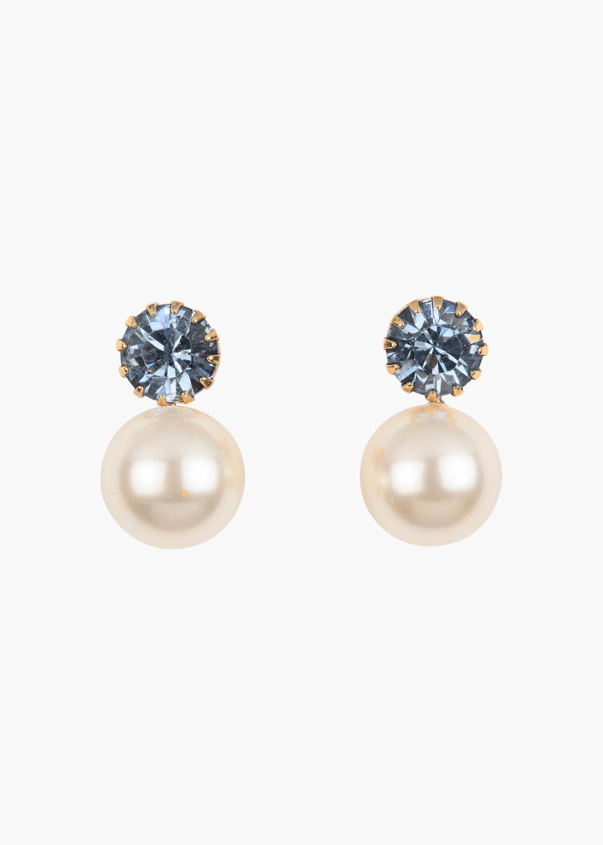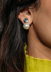 The Ines Earrings pair sparkling crystals and crystal pearls in a drop silhouette, creating a style that is incredibly versatile. These earrings will become your go-to for understated glamour. These dainty earrings are perfect for elevating your everyday look, or try pairing with the coordinating Ines Headband . Material The Ines Earring is a post earring. Our earrings are nickel-free and safe for sensitive skin. These earrings are crafted by hand in New York from crystals, pearls, and rhodium plated or light antique gold-tone plated brass. We recommend storing earrings in their dust bag while not in use, and avoiding contact with water, perfume, hairspray, and other chemicals.
