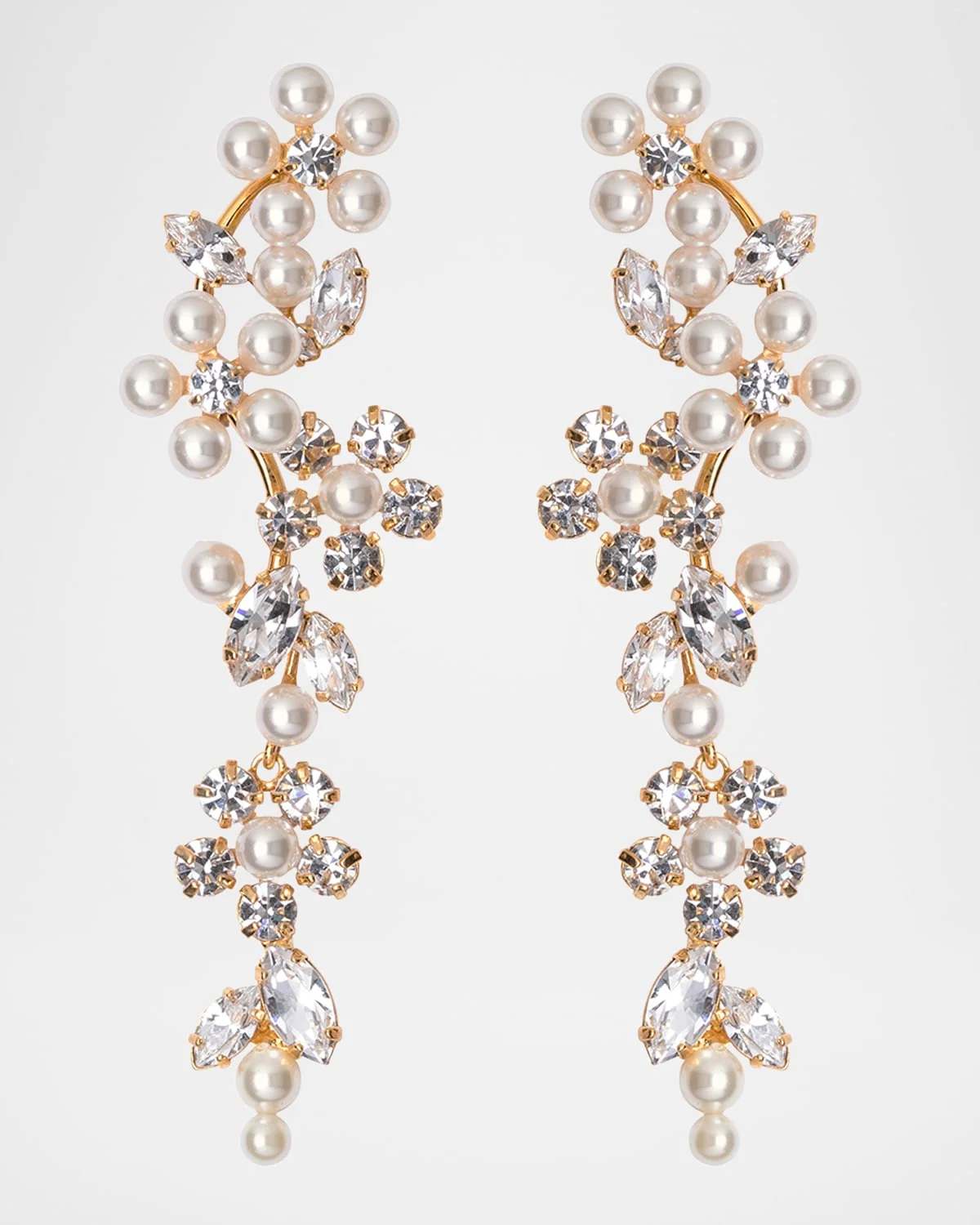 - Jennifer Behr earrings are crafted with crystals and pearlescent beads - Approx. 3 1/4" length - 18-karat gold-plated brass - For pierced ears - Made in USA