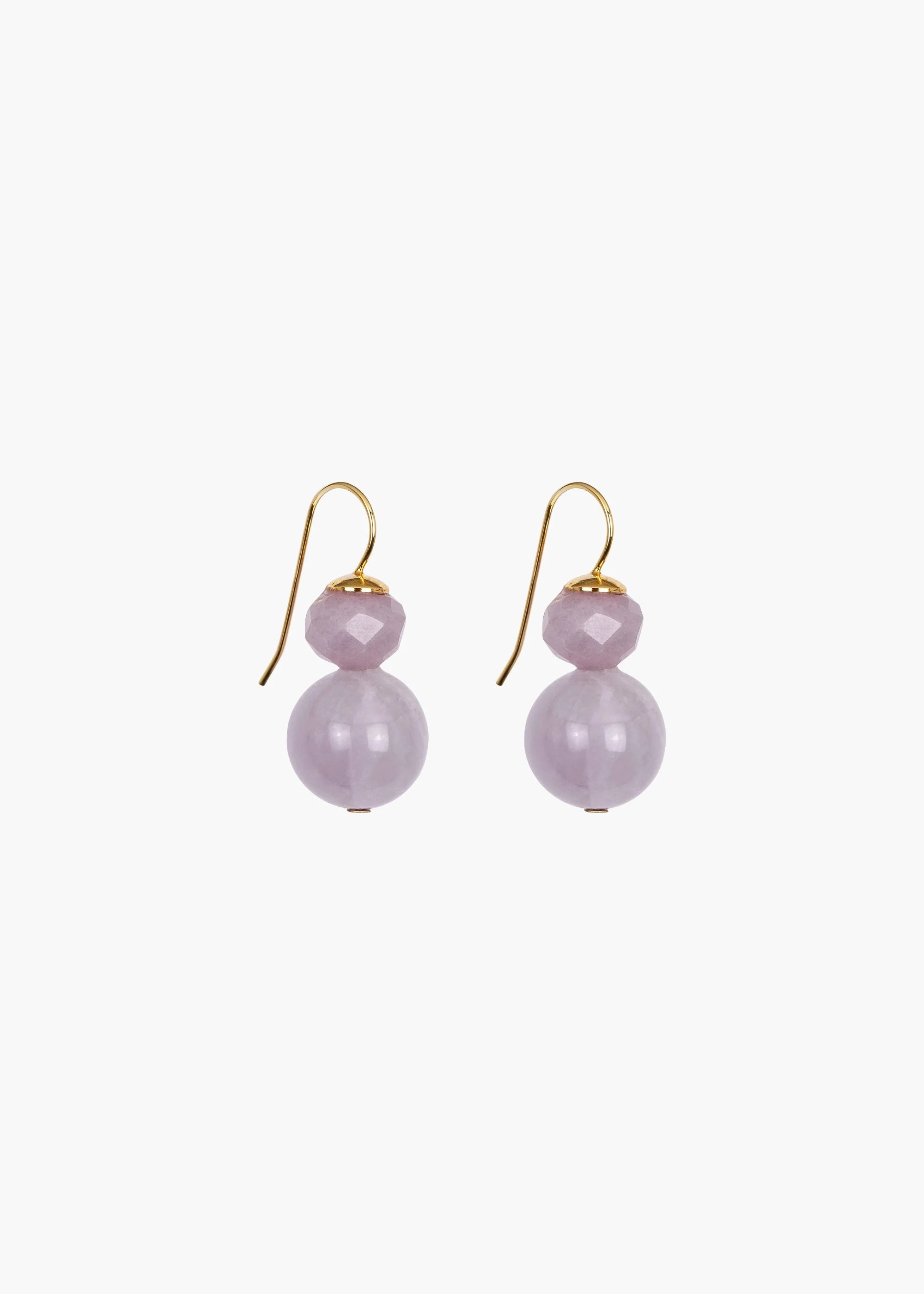 A succinct drop featuring semi-precious gemstones, the Jaycee Earrings fill the void of a chic chameleon in your jewelry collection. Made by hand in New York with 18-karat gold-plated details, the unusual lilac jade stone is known as "the stone of the angels," connecting to divine energy, while its icy hue carries you through seasons effortlessly. We love these drops paired with the matching Rora Necklace. Material The Jaycee Earrings are made by hand in New York from 18K gold plated brass and semi-precious lilac jadeite jade. All stones have natural variances in color and markings that make each one unique. They have a gold-filled ear wire post, are nickel-free, and safe for sensitive skin. We recommend storing earrings in their dust bag while not in use, and avoiding contact with water, perfume, hairspray, and other chemicals.