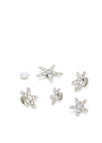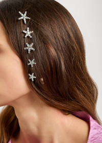 Info & Care Handmade Jennifer Behr rhodium-plated brass hair magnets Set of;five Crystal-embellished stars, designer engraved Presented in a designer-stamped box with a pouch Size & Fit Dimension 1: 1.5cm x 1.5cm Dimension 2: 2cm x 2cm Dimension 3: 2.5cm x 2.5cm