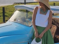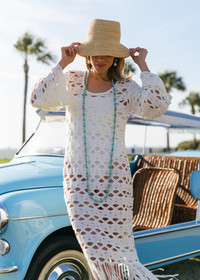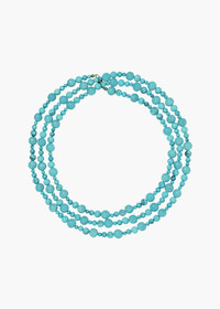 A long strand of turquoise beads, the Malta necklace can be worn single, double or triple wrapped around your neck. This piece came to life following Julia’s years of searching for the perfect summer necklace. The necklace is made from 100% turquoise beads and is designed to be mixed effortlessly with earrings from this capsule, such as the Cove or Cay Earrings, for the ultimate vibrant summer look. Dimensions: 60" total length Material The Jennifer Behr x Julia Berolzheimer Malta Necklace is made by hand in New York from stabilized turquoise beads with an 18K gold plated brass closure. All stones have natural variances in color and markings that make each one unique. We recommend storing necklaces in their dust bag while not in use, and avoiding contact with water, perfume, hairspray, and other chemicals.
