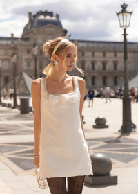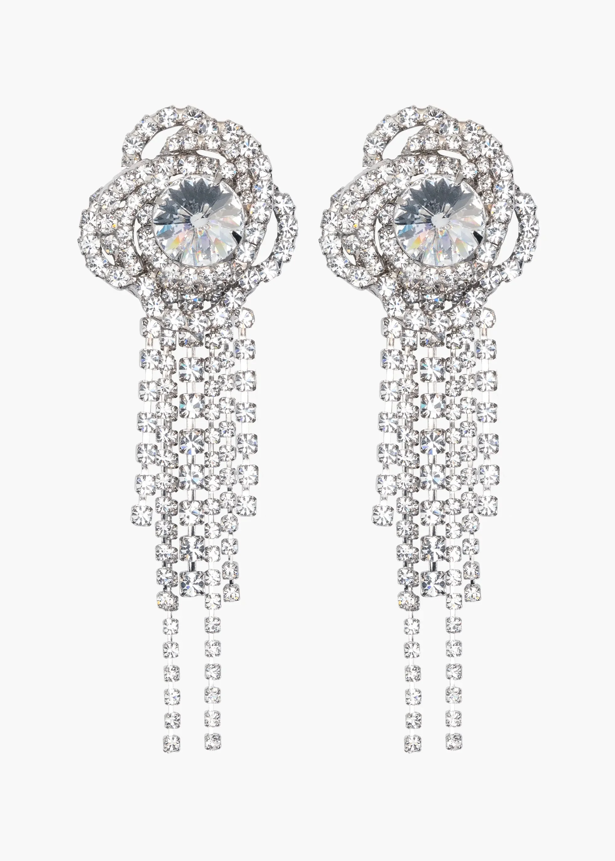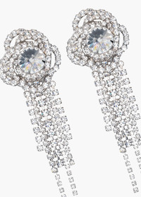 A collaboration with international fashion force Leonie Hanne, the Amelie Earrings are "designed to speak to women around the world who adore experimenting with fashion and having fun with their looks," says Hanne. Crafted by hand in New York of fine Austrian crystals, these earrings feature a single oversized stone, bound by strands of smaller crystals to form an abstract, modern rosette. A dramatic crystal fringe adds endless movement for an unforgettable look. Dimensions: 3.75 inch length Material The Jennifer Behr x Leonie Hanne Amelie Earrings are made by hand in New York from Austrian crystal and rhodium plated brass. They have a surgical-steel post, are nickel-free and safe for sensitive skin. We recommend storing earrings in their dust bag while not in use, and avoiding contact with water, perfume, hairspray, and other chemicals.