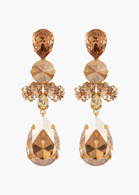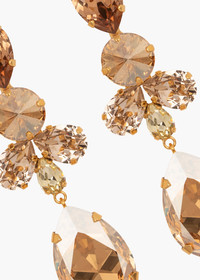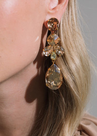 Oozing with romance, the Jillian Earrings boast a range of golden tones, designed to give the effect of crystal under candlelight. Made by hand in New York, their movement generates flickering sparkle that accentuates this dreamy quality. With intentional design, the 18-karat gold-plated setting highlights the richness and depth of the fine Austrian crystals they are composed of. Dimensions: 3.25" length Material The Jilian Earrings are made by hand in New York from Austrian crystals and 18k gold or rhodium plated brass. They have a surgical-steel post, are nickel-free and safe for sensitive skin. We recommend storing earrings in their dust bag while not in use, and avoiding contact with water, perfume, hairspray, and other chemicals.