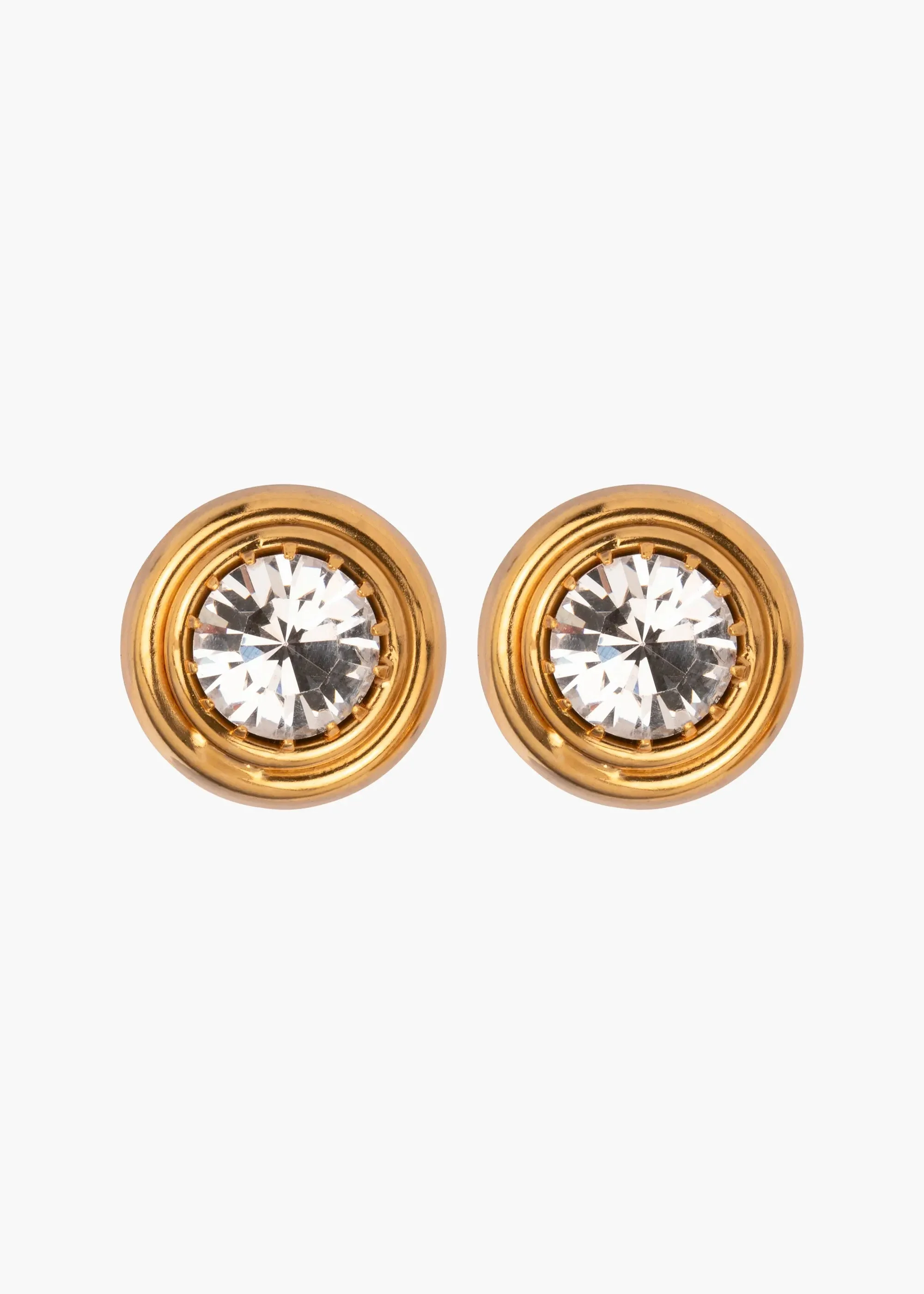 The Jodi Earrings are an ultra-wearable, yet striking, addition to any jewelry wardrobe. Inspired by vintage fine jewelry with multi-prong settings, these petite studs feature an Austrian crystal in an 18-karat gold-plated bezel. They feel weightless and comfortable on the ear, making them all the more versatile. Dimensions: 3/4in x 3/4in Material The Jodi Earrings are made by hand in New York from 18K gold plated brass and Austrian crystals. They have a surgical-steel post, are nickel-free, and safe for sensitive skin. We recommend storing earrings in their dust bag while not in use, and avoiding contact with water, perfume, hairspray, and other chemicals.