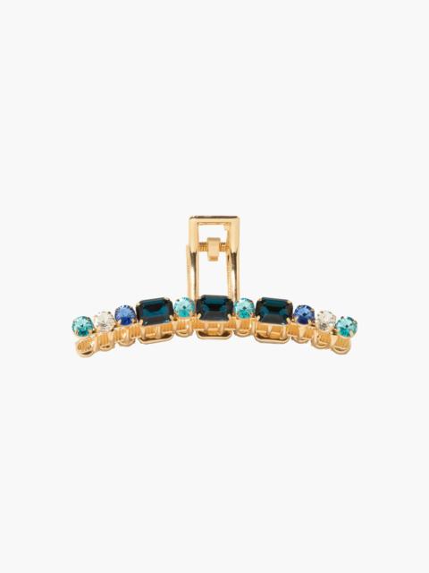 Inspired by our best-selling Justine Earrings, the Justine Jaw Clip is functional jewelry for the hair. This piece is studded with fine cubic zirconia in emerald and round cuts to form a graphic pattern. It sits on a secure clip, which is easy to place in a half-up or fully swept-back hairstyle. Dimensions: 4 3/4in x 1 3/4in Material The Justine Jaw Clip is made by hand of 18K gold tone or rhodium plated brass Austrian crystals on a plated steel claw clip. We recommend treating this clip as you would a piece of jewelry, and storing in the dust bag when not in use. Avoid contact with water, perfume, and other chemicals, including hairspray, which should be used before placement in the hair. Imported.
