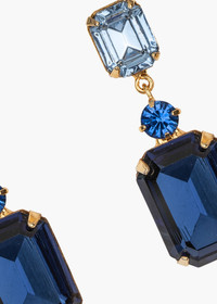 Your Bejeweled Era begins with the Justine Earrings. A pair of stately emerald-cut crystals in complementary hues are separated by a single delicate round stone. These superior drops will remain in constant rotation in your wardrobe for years to come. Material The Justine Earrings are made by hand in New York from 18K gold or rhodium plated brass and crystal. They have a surgical-steel post, are nickel-free, and safe for sensitive skin. We recommend storing earrings in their dust bag while not in use, and avoiding contact with water, perfume, hairspray, and other chemicals.