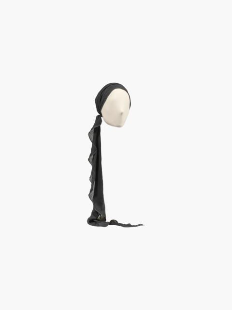 The Kamryn Scarf Headwrap was born of our desire for a more elegant way to wear a headscarf. Made by hand in New York, this silk georgette fabric was carefully selected as it strikes the perfect balance of sheerness and structure, while embracing the inimitable movement of natural silk— wrap the loose ends around a ponytail, into a braid, or wear them freely trailing. Hidden elastic in the back ensures a comfortable, secure fit that will stay in place in the hair. Material The Kamryn Scarf Headwrap is made by hand in New York from silk georgette. We recommend storing headwraps in their dust bag while not in use. Avoid contact with water, perfume, and other chemicals, including hairspray, which should be used only before placement in the hair.
