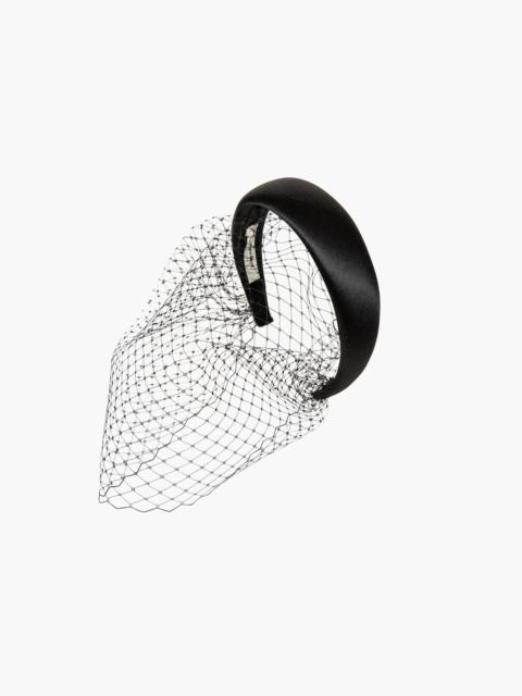 The Kate Voilette Headband in Satin unites modern forms with classic veiling in a stunning statement headpiece. Crafted by hand in New York, the sleek silk satin padded headband has a voluminous yet slightly flattened profile. It's finished with a signature Jennifer Behr voilette, which gracefully floats before the face. Material The Kate Voilette Headband is made in New York of silk and veiling, lined with grosgrain to promote hair health. We recommend treating this voilette as you would a piece of jewelry, and storing in the dust bag when not in use. Avoid contact with water, perfume, and other chemicals, including hairspray, which should be used before placement in the hair.