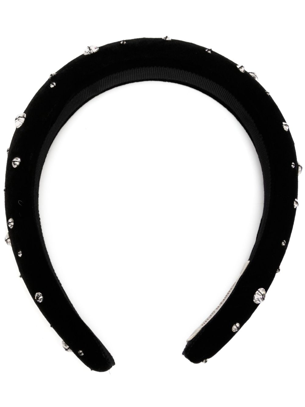 Kendall headband Highlights - Black - Padded design - Highlights red silk grosgrain ribbon trim crystal embellishment slip-on style Made in United States Composition Rayon 60%, Silk 40%