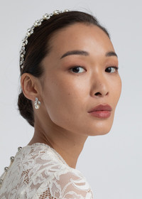 Delicate yet impactful, the Kamila Headband leaves all eyes on you. A vine of crystal flora is punctuated by lustrous pearls, with a raised silhouette subtly suggesting the height of a tiara. The fine headband base disappears into the hair, creating the sublime illusion of gems magically afloat. Pair with the matching Kaide Earrings . Material The Kamila Headband is made in New York of rhodium plated brass, crystals, and crystal pearls on a thin and flexible headband, which is designed to disappear in the hair and ensure hours of comfort. We recommend treating this headband as you would a piece of jewelry, and storing in the dust bag when not in use. Avoid contact with water, perfume, and other chemicals, including hairspray, which should be used before placement in the hair.