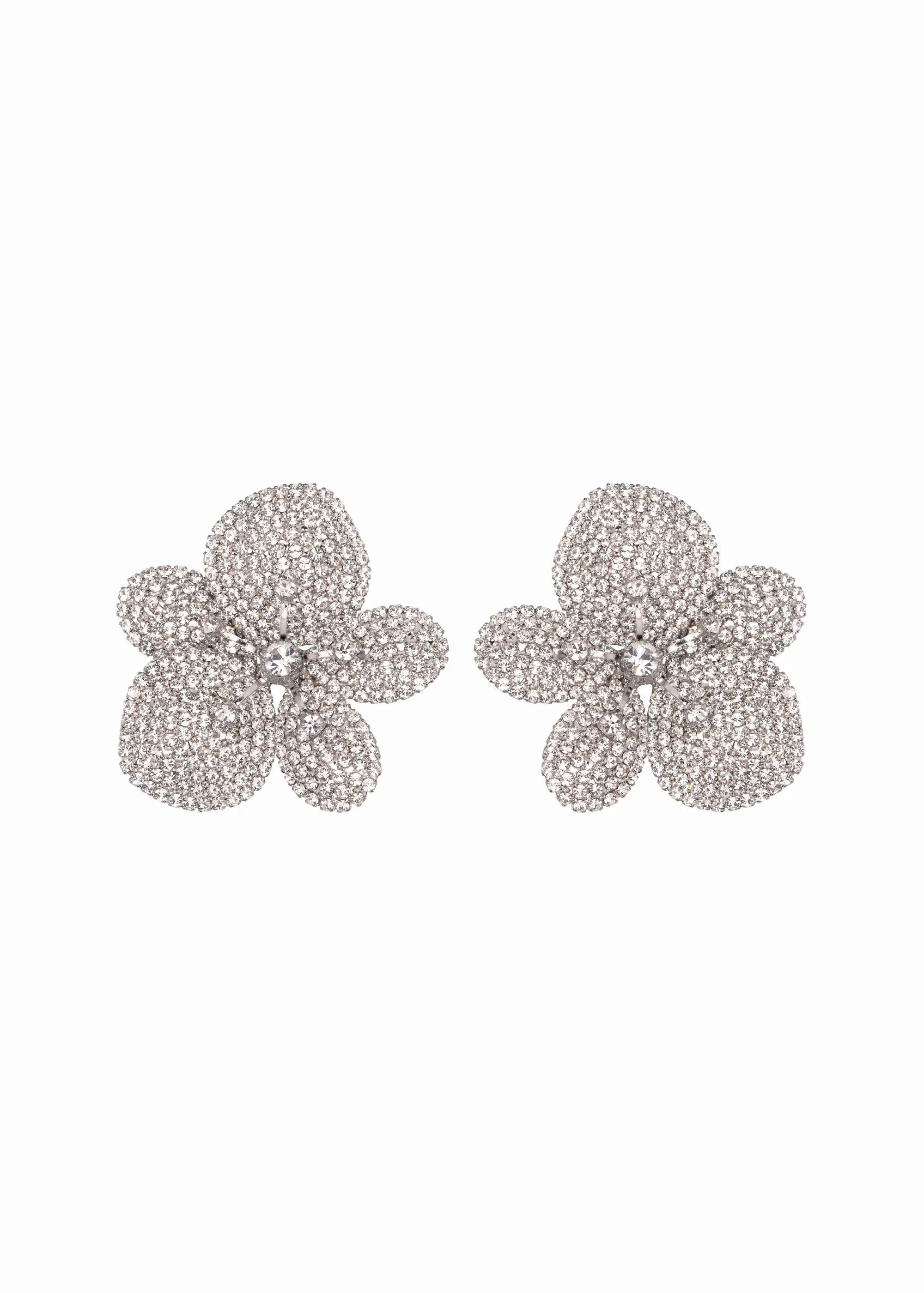 The Kiarra Earrings are lifelike blooms, dramatically blanketed in pave crystal to form a stunning statement. This effect can only be achieve by the considerable level of craftsmanship on display in these earrings, each one made by hand in New York. Pair them with the Kiara Brooch for a fully coordinated look. Dimensions: 2in x 1 7/8in Material The Orchid Earrings are made by hand in New York from Rhodium or 18K gold plated brass and Austrian crystals. They have a surgical-steel post, are nickel-free, and safe for sensitive skin. We recommend storing earrings in their dust bag while not in use, and avoiding contact with water, perfume, hairspray, and other chemicals.