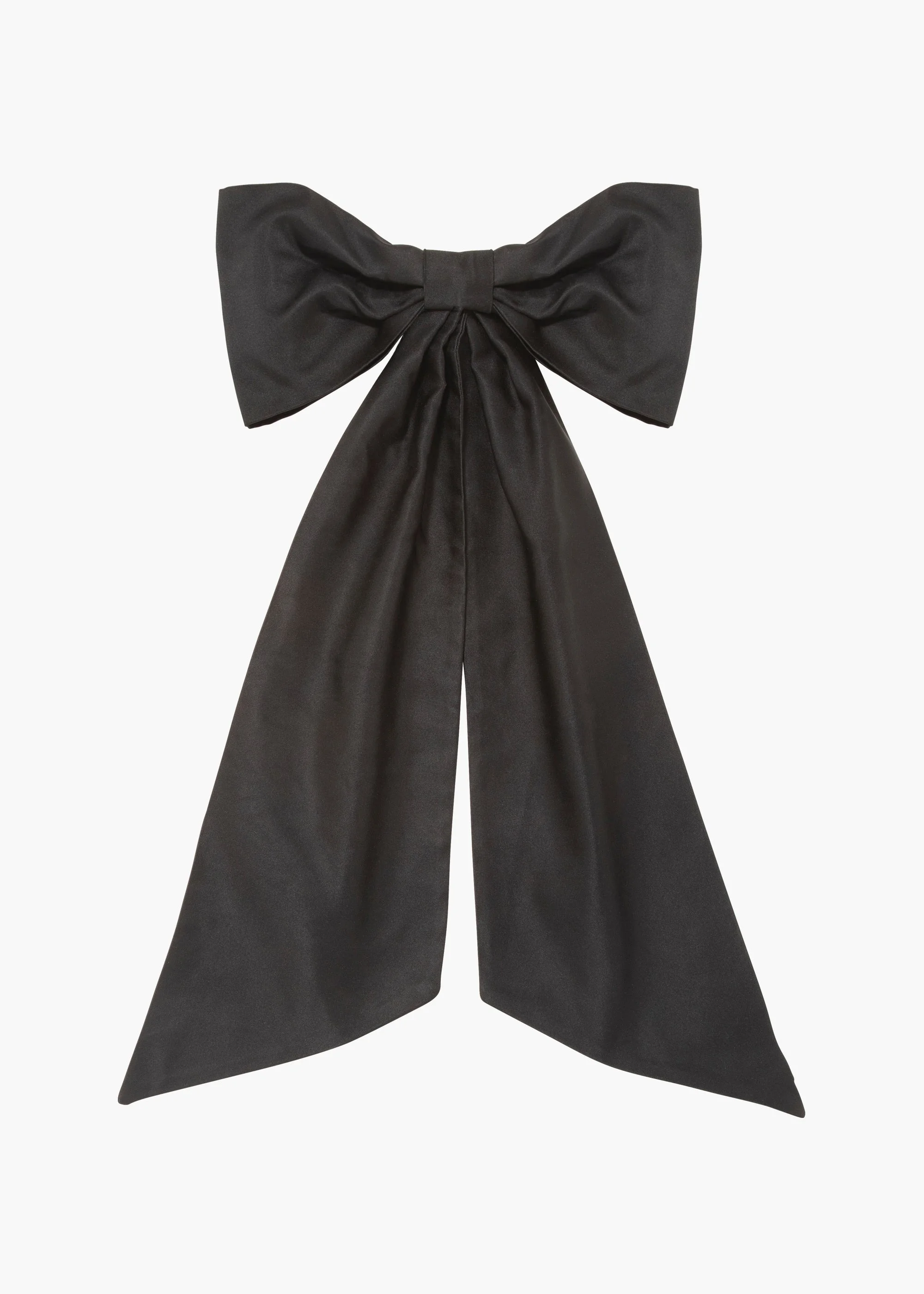 An unforgettable finishing touch, the Leander Bow Barrette dwarfs all other bows with its magnificent scale. Expertly draped and sewn by hand in our New York studio, the structure of the silk satin fabric lends itself perfectly to the oversized bow shape. An automatic French barrette closure makes for easy placement in any number of hairstyles. Material The Leander Bow Barrette is made by hand in New York of silk satin with a steel French barrette closure. We recommend treating this bow as you would a piece of jewelry, and storing in the dust bag when not in use. Avoid contact with water, perfume, and other chemicals, including hairspray, which should be used before placement in the hair.