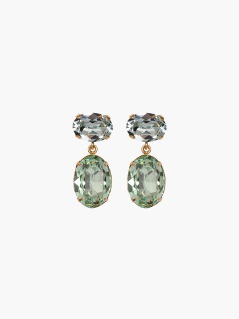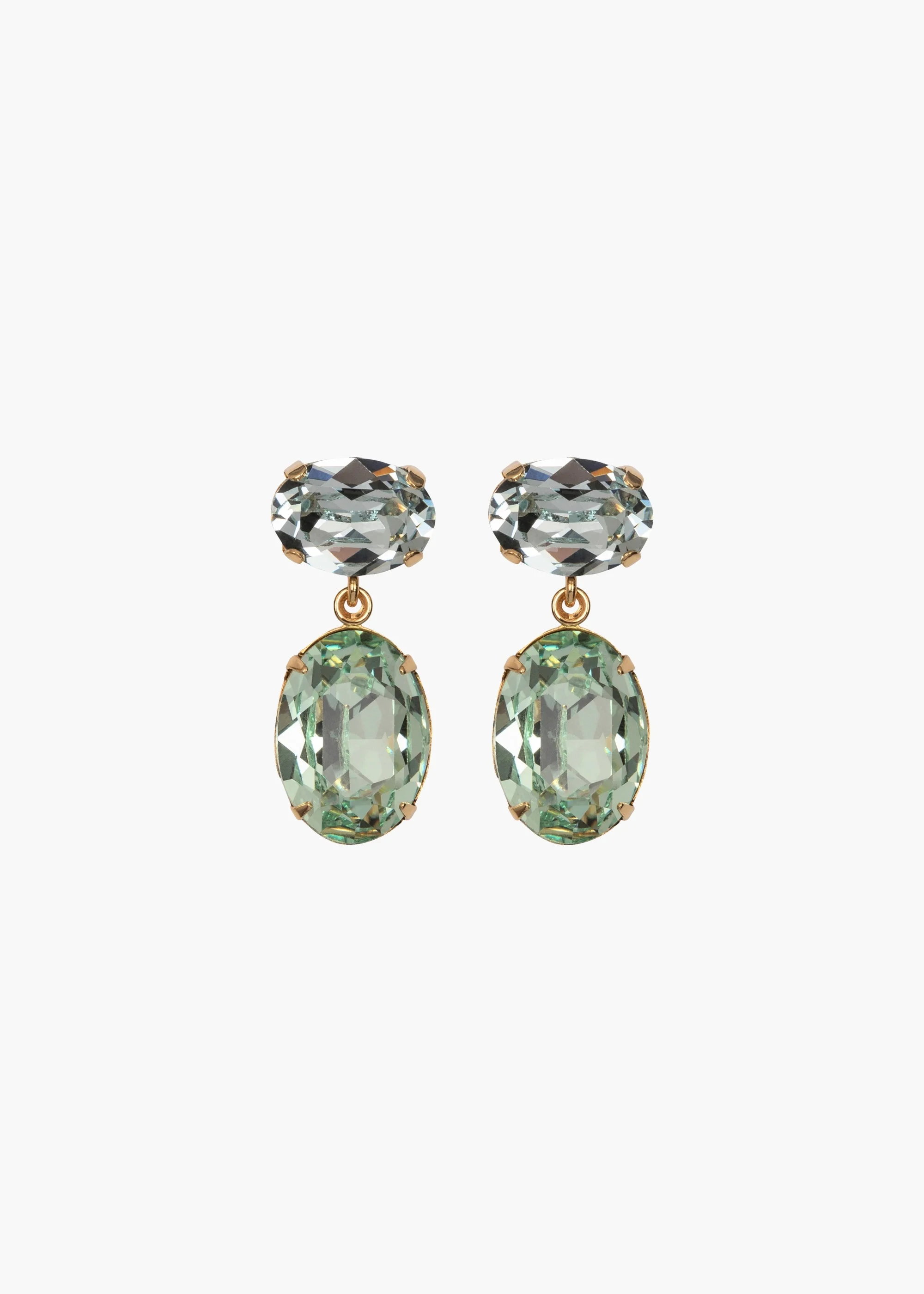 Inspired by antique Georgian era drop earrings, the Lenora Earrings offer a modern twist on an enduring design. Made by hand in New York, fine Austrian crystals are set in opposing directions, in an 18-karat gold-plated setting. These drops are perfectly sized to take you from day to night. Dimensions: 1.25" length Material The Lenora Earrings are made by hand in New York from Austrian crystals and 18k gold plated brass. They have a surgical-steel post, are nickel-free and safe for sensitive skin. We recommend storing earrings in their dust bag while not in use, and avoiding contact with water, perfume, hairspray, and other chemicals.