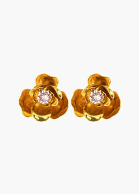 A new expression of a Jennifer Behr classic, the Lil Earrings carry an understated elegance that makes them a staple of any wardrobe. Each stud boasts a delicate blossom hand crafted from antique gold-plated brass and set with a crystal at the center for a little bit of sparkle. Material The Lil Earring is a stud earring with a surgical-steel post. Our earrings are nickel-free and safe for sensitive skin. These earrings are made by hand in New York, from 18K gold plated brass and fine Czech crystals. We recommend storing earrings in their dust bag while not in use, and avoiding contact with water, perfume, hairspray, and other chemicals.