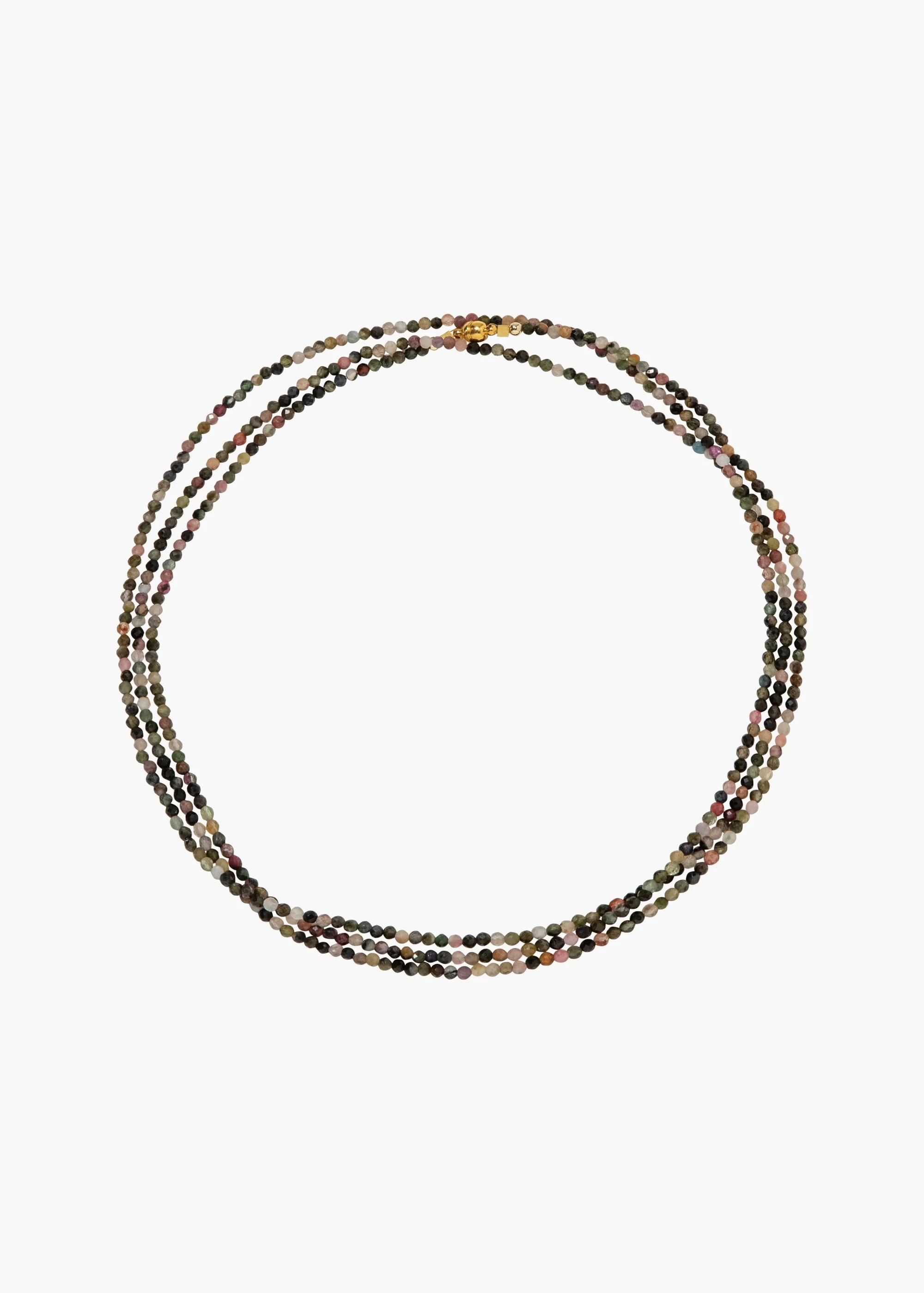 Crafted entirely of finely faceted semi-precious gemstones, the Lisette Necklace highlights the idiosyncrasies of these stones that make them so special. Made by hand in New York, it's finished with a discrete 18-karat gold-plated magnetic clasp, making it possible to double or triple-wrap it around the neck for a layered effect, or even wear it wrapped around the wrist as a bracelet. This necklace layers beautifully with other semi-precious necklaces in our collection. Dimensions: 54" length Material The Lisette Necklace is handmade in New York of faceted semiprecious onyx, hasonite, green quartz or lapis lazuli gemstones with a 18K gold plated magnetic closure. All stones have natural variances in color and markings that make each one unique. We recommend storing necklaces in their dust bag while not in use, and avoiding contact with water, perfume, hairspray, and other chemicals.