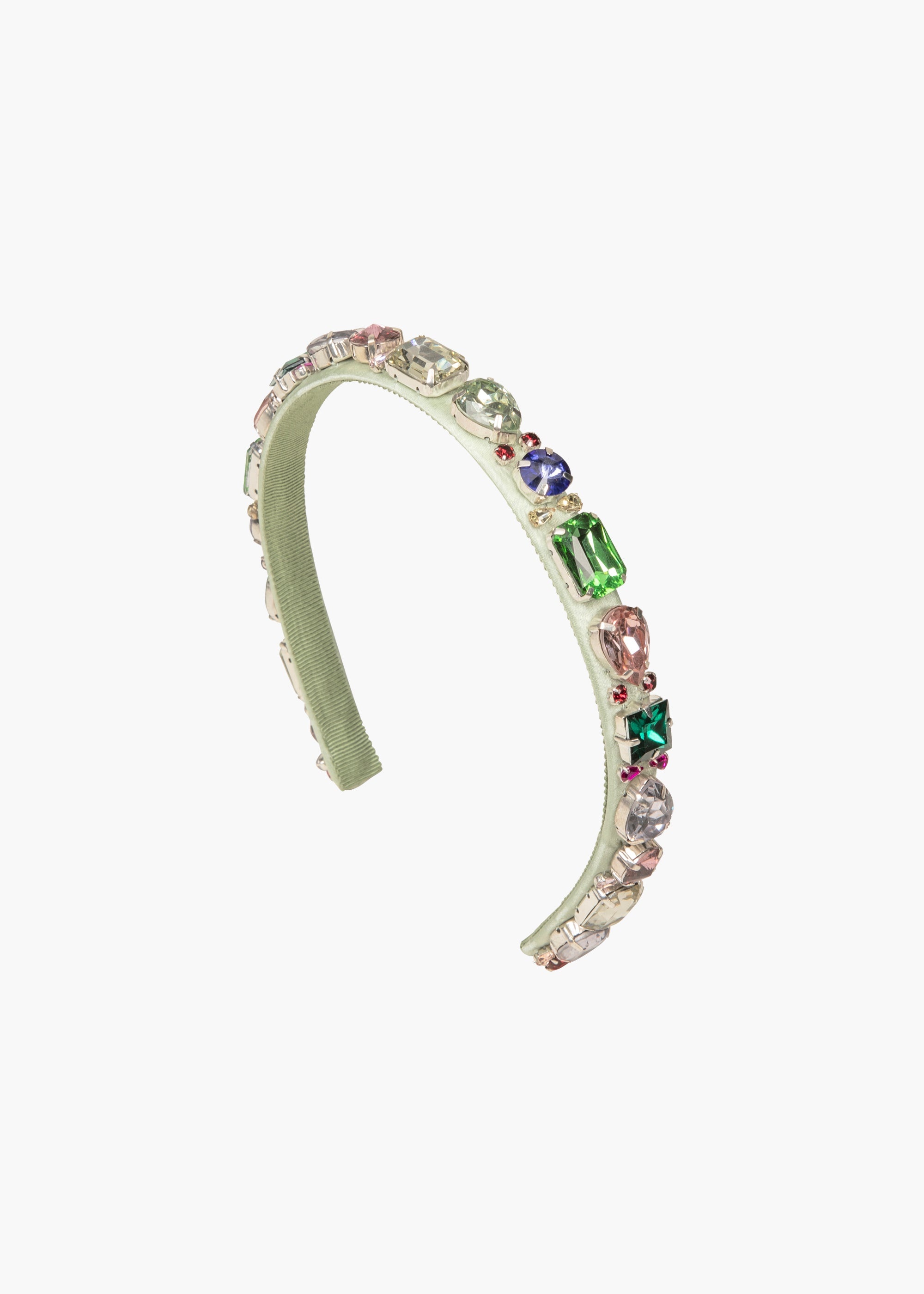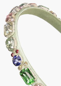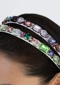 The Lucia Headband's irreverent approach is a breath of fresh air, emblazoned with hand-embroidered crystals in a range of cuts and shapes. The flexible and comfortable headband base means this elevated essential is easy to slip onto any look. Collect multiple colors, and consider layering two at a time for the ultimate impact. Material The Lucia Headband is crafted in New York from hand-embroidered crystals on silk satin and is lined in grosgrain to ensure ultimate comfort and promote hair health. We recommend storing headbands in their dust bag while not in use. Avoid contact with water, perfume, and other chemicals, including hairspray, which should be used only before placement in the hair.