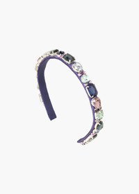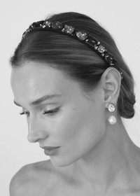 The Lucia Headband's irreverent approach is a breath of fresh air, emblazoned with hand-embroidered crystals in a range of cuts and shapes. The flexible and comfortable headband base means this elevated essential is easy to slip onto any look. Collect multiple colors, and consider layering two at a time for the ultimate impact. Material The Lucia Headband is crafted in New York from hand-embroidered crystals on silk satin and is lined in grosgrain to ensure ultimate comfort and promote hair health. We recommend storing headbands in their dust bag while not in use. Avoid contact with water, perfume, and other chemicals, including hairspray, which should be used only before placement in the hair.