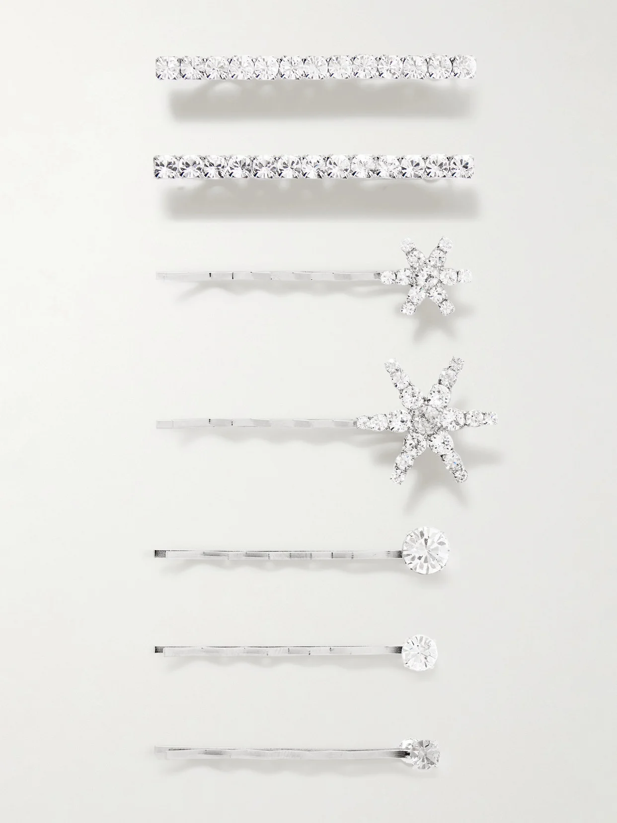 EXCLUSIVE AT NET-A-PORTER. Jennifer Behr's set of seven hair slides can be worn altogether, as seen on our model, or just a few at a time. They're handmade from silver-tone metal and set with sparkling Swarovski crystals.
