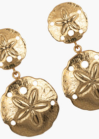 The ocean captures our imagination endlessly, and the Marinae Earrings bring the wonder of the sea to your everyday. The easy-to-wear drops feature two sand dollars, complete with beautifully chiseled details. Thanks to their neutral gold tone, there's no look this pair won't elevate. Dimensions: 2 inch length Material The Marinae Earrings are made by hand in New York from 18K gold plated brass. They have a surgical-steel post, are nickel-free, and safe for sensitive skin. We recommend storing earrings in their dust bag while not in use, and avoiding contact with water, perfume, hairspray, and other chemicals.