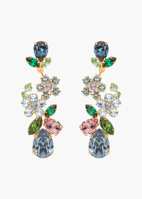 For the floral lover, the Martella Earrings are a fresh addition to your collection of our iconic garden styles. A wearable version of the most awe-inducing floral arrangements, fine Austrian crystals in a plethora of colors and cuts are pieced together, creating an incredibly rich multi-color garden effect. These earrings are made by hand in New York, with an 18-karat gold-plated setting. Dimensions: 2 1/8in x 3/4in Material The Martella Earrings are made by hand in New York from 18K gold plated brass and Austrian crystals. They have a surgical-steel post, are nickel-free, and safe for sensitive skin. We recommend storing earrings in their dust bag while not in use, and avoiding contact with water, perfume, hairspray, and other chemicals.
