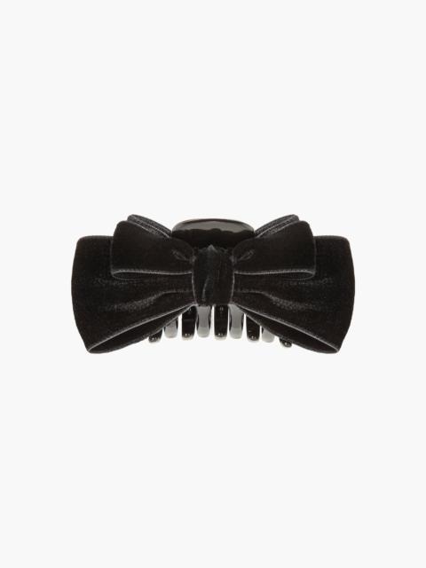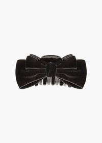 Our adored velvet bow just received the jaw-clip treatment: the Matilda Jaw Clip is the accessory you don't want to run out the door without. Luxe velvet ribbon forms graduating layers of bows, for dimension and volume. These delicious bows sit on a sturdy acrylic resin jaw clip, making it easy to sweep hair half-up, all the way back, and into any style in between. Material The Matilda Jaw Clip is made by hand in New York of velvet ribbon, with an acrylic resin claw clip. We recommend treating this clip as you would a piece of jewelry, and storing in the dust bag when not in use. Avoid contact with water, perfume, and other chemicals, including hairspray, which should be used before placement in the hair.