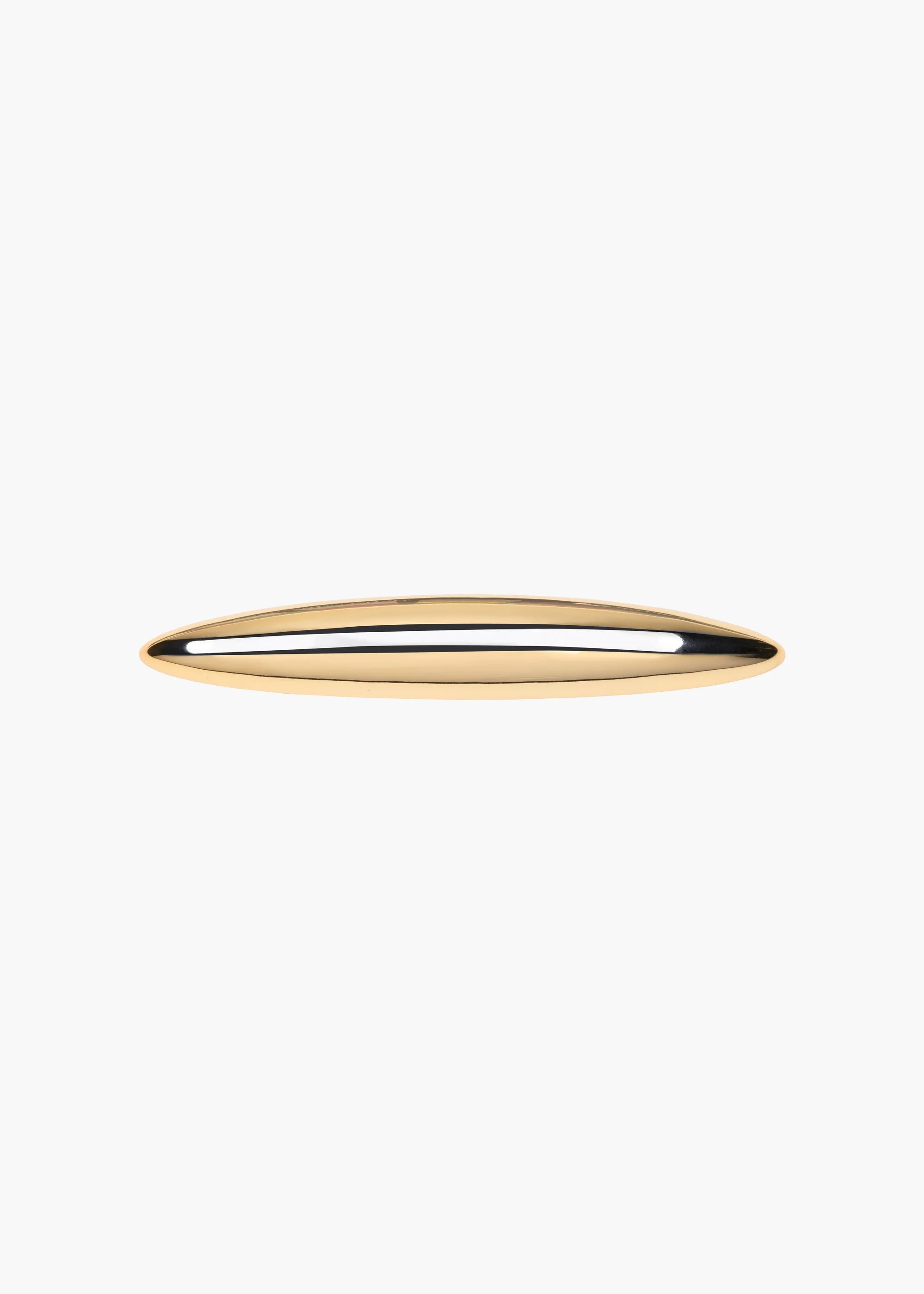 A sartorial palate cleanser, the Maxine Barrette boasts a sleek, minimalist design. With its neutral gold tone, this barrette is a timeless wardrobe staple. It fastens with an automatic French barrette clasp for secure placement in the hair. Material The Maxine Barrette is made of 18K gold tone plated zinc with a steel automatic French barrette. We recommend treating this clip as you would a piece of jewelry, and storing in the dust bag when not in use. Avoid contact with water, perfume, and other chemicals, including hairspray, which should be used before placement in the hair. Imported.