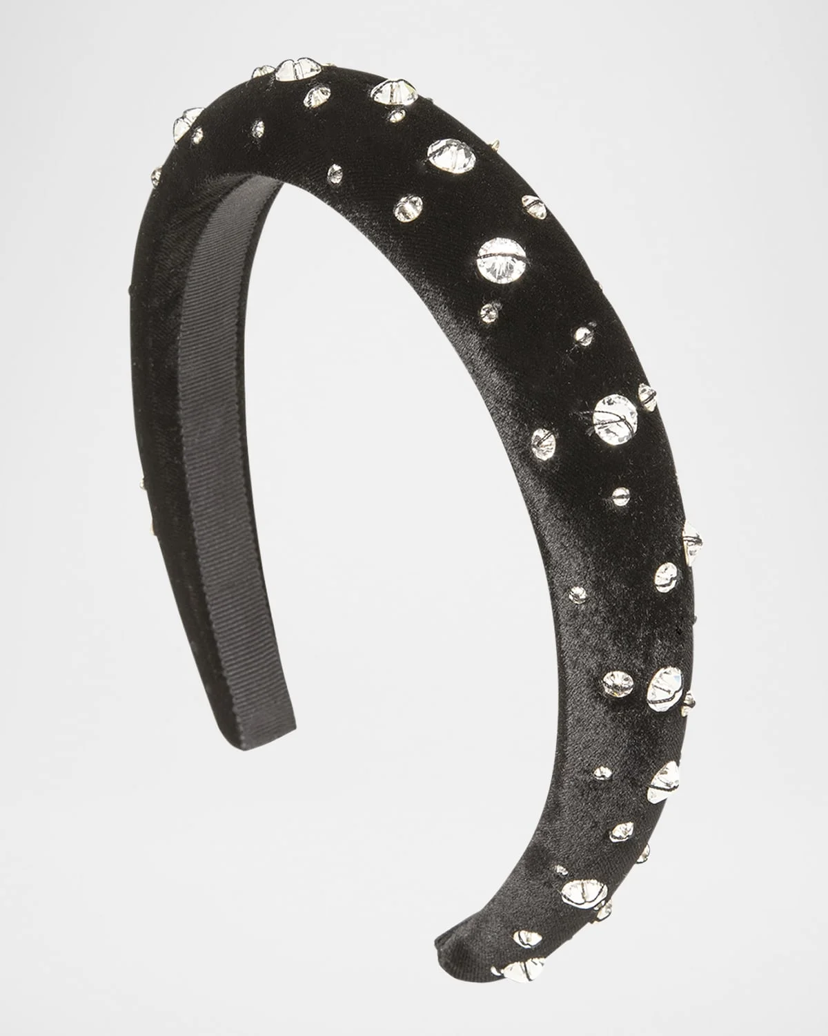 - Jennifer Behr "Merla" headband features hand-embroidered scattered Czech crystals on a velvet-wrapped padded silhouette - Lined with grosgrain for comfort and to promote hair health - Silkette® viscose/crystals - Made in USA