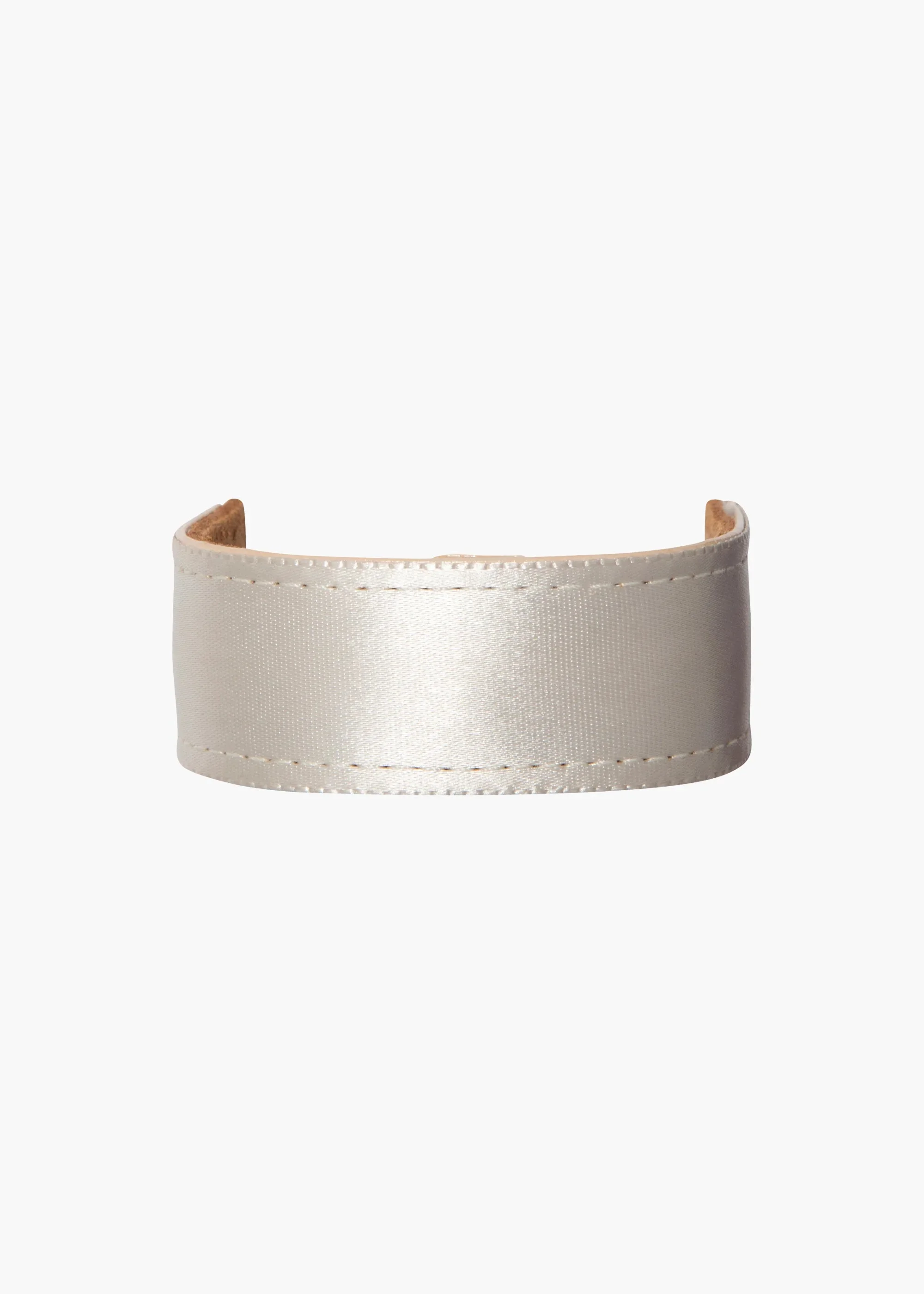 The Mini Satin Ribbon Pony Wrap is a functional wardrobe essential, offering an elegant take on the idea of a ribbon wrapped in the hair. Each one is made by hand in New York of satin ribbon, with suede lining for structure and a bendable wire interior, making it possible to perfectly curve it around your ponytail, no matter its thickness. It is finished with a Japanese elastic, specifically selected for its strength and stretch. Material The Mini Satin Ribbon Ponywrap is made by hand in New York of satin ribbon, lined in suede with a bendable wire interior. We recommend treating this piece as you would a piece of jewelry, and storing in the dust bag when not in use. Avoid contact with water, perfume, and other chemicals, including hairspray, which should be used before placement in the hair.