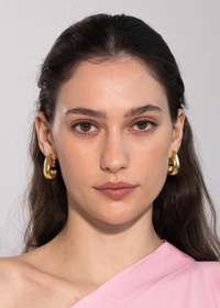 The Miral Earrings are a modern, ultra-cool take on a classic hoop earring. These golden half-hoops boast a high-shine 18-karat gold-plated finish. Endlessly-wearable, they will effortlessly take you from day to night. Material The Miral Earring is an 18K gold plated brass hoop earring with a surgical-steel post. Our earrings are nickel-free and safe for sensitive skin. We recommend storing earrings in their dust bag while not in use, and avoiding contact with water, perfume, hairspray, and other chemicals. Imported.