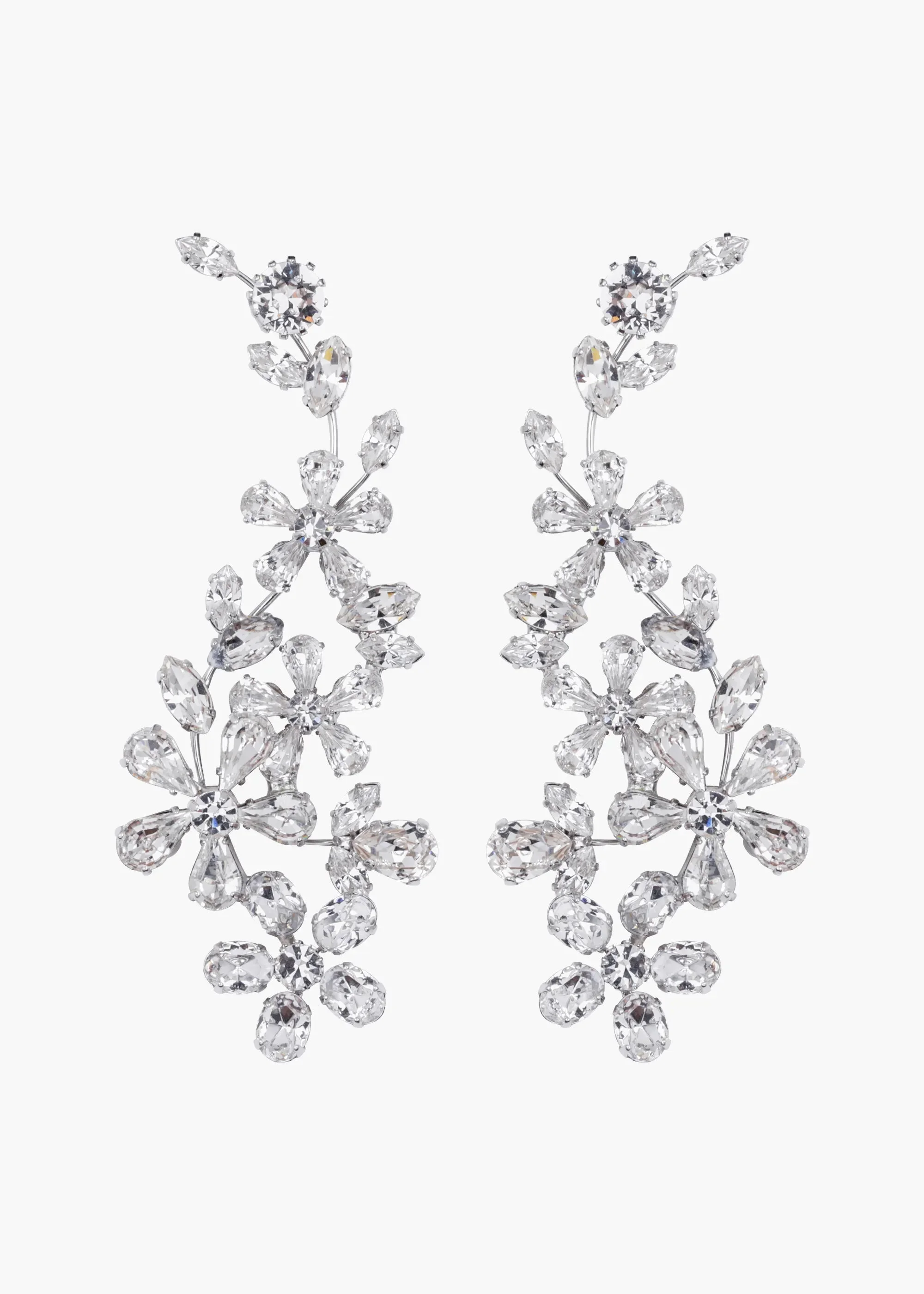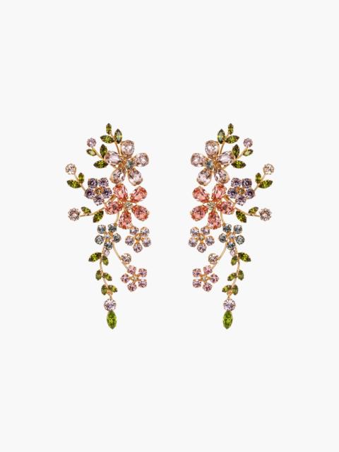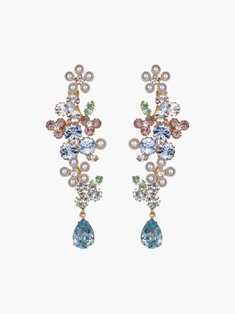 Thoughtfully designed to frame the face, the Mirella Earrings feature a swirling floral vine that feels formed by nature. Crafted by hand in New York, these earrings reference a garden, each flower designed with fine crystal stones, guaranteed to glimmer in candlelight. Though statement-making in scale, these earrings are lightweight for their size due to their hand-made construction. Dimensions: 3 3/4in x 1 3/8in Material The Mirella Earrings are made by hand in New York from 18K gold plated brass and Austrian crystals. They have a surgical-steel post, are nickel-free, and safe for sensitive skin. We recommend storing earrings in their dust bag while not in use, and avoiding contact with water, perfume, hairspray, and other chemicals.