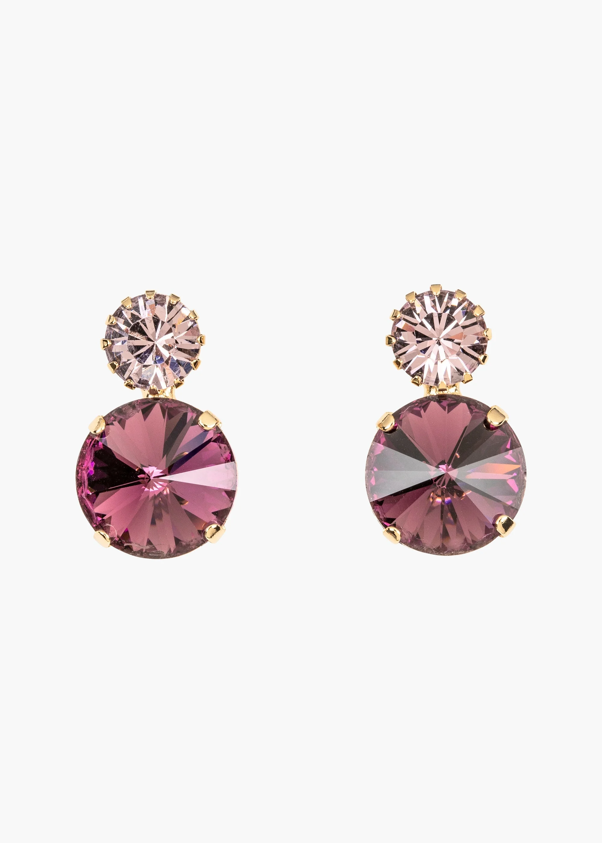The radiant crystals of the Myrla Earrings are the perfect way to add some sparkle to your look. Each earring is made of varying combinations of radiant crystals and smaller complimentary stones. Can't get enough sparkle? Try pairing this style with the coordinating Myrla Bobby Pin . Dimensions: .90 inch length Material The Myrla Earring is a post earring. Our earrings are nickel-free and safe for sensitive skin. These earrings are crafted by hand in New York from crystals and rhodium plated or light antique gold-tone plated brass. We recommend storing earrings in their dust bag while not in use, and avoiding contact with water, perfume, hairspray, and other chemicals.
