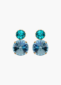 The radiant crystals of the Myrla Earrings are the perfect way to add some sparkle to your look. Each earring is made of varying combinations of radiant crystals and smaller complimentary stones. Can't get enough sparkle? Try pairing this style with the coordinating Myrla Bobby Pin . Dimensions: .90 inch length Material The Myrla Earrings are made by hand in New York from 18K gold or rhodium plated brass and crystal. They have a surgical-steel post, are nickel-free, and safe for sensitive skin. We recommend storing earrings in their dust bag while not in use, and avoiding contact with water, perfume, hairspray, and other chemicals.