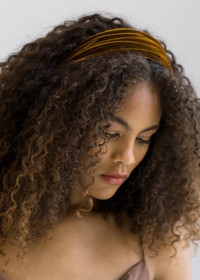 A well-designed combination of form and function, the Velvet Natasha Headband gives the feeling of a scarf effortlessly tied in the hair, with the ease of a headband. Hand-draped silk velvet is gathered to perfection, highlighting the plush velvet's texture. Made by hand in New York, the headband's flexible fit guarantees comfort, and the interior is lined in grosgrain, so that it stays perfectly in place all day and night. Material The Natasha Headband is made in New York from hand-draped silk velvet, with a rayon grosgrain ribbon interior. We recommend storing headbands in their dust bag while not in use. Avoid contact with water, perfume, and other chemicals, including hairspray, which should be used only before placement in the hair.