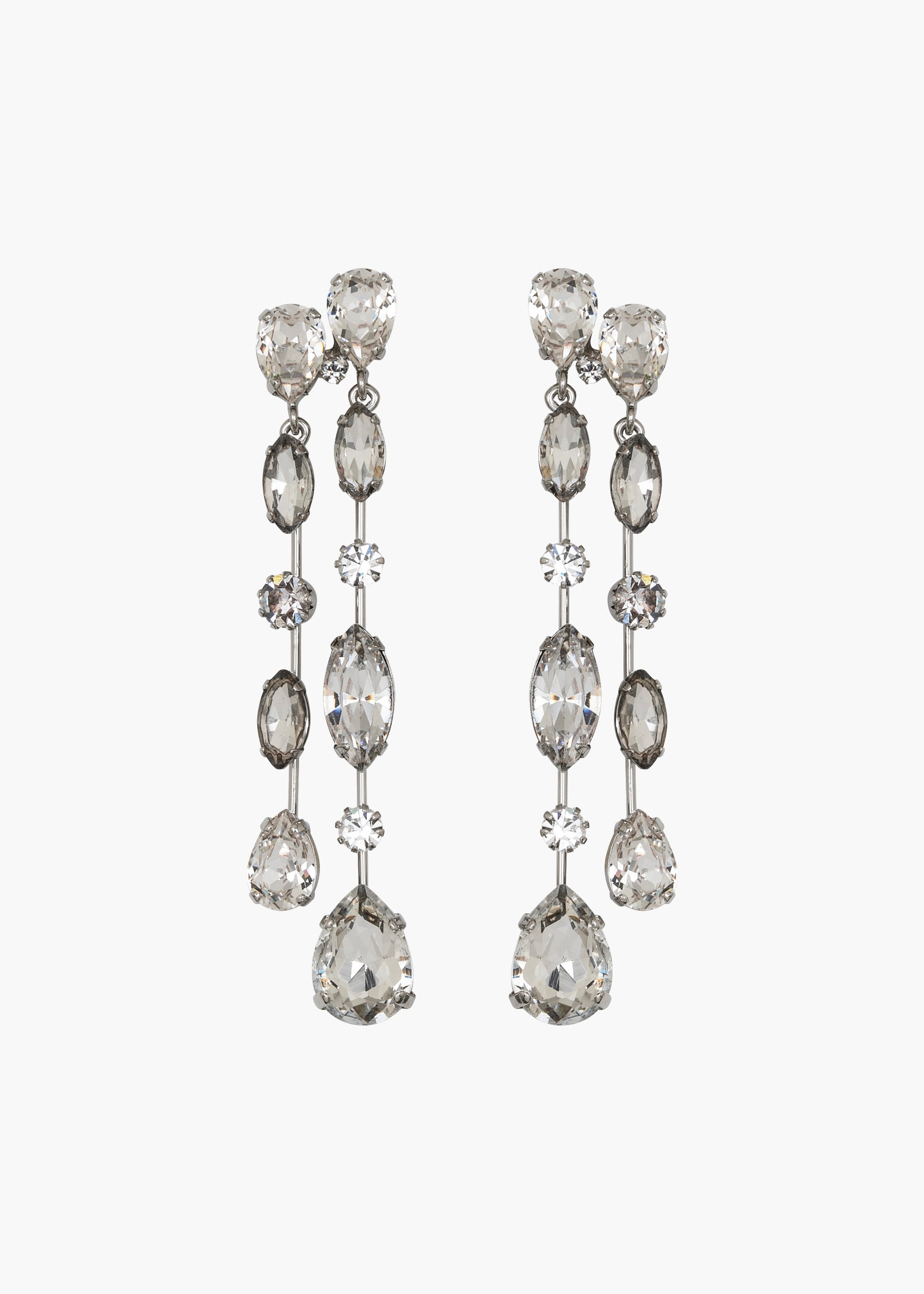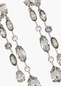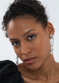 Jaw-dropping, face-framing, and altogether statement-making: the Nessa Earrings promise to sparkle endlessly. These spectacular earrings feature rivulets of carefully-set crystals dripping splendidly from the ear. Made by hand in New York, the drop's movement is thoughtfully designed to maximize each stone's sparkle. Material The Nessa Earring is a post earring with a surgical-steel post. Our earrings are nickel-free and safe for sensitive skin. These earrings are made by hand in New York, from rhodium plated gem-cut Czech crystals. We recommend storing earrings in their dust bag while not in use, and avoiding contact with water, perfume, hairspray, and other chemicals.