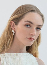 The subtly eye-catching Perlita Earrings are a timeless update on a classic pearl drop. Stunning in their simplicity, the arrangement of pearls appears to be bursting with life. A single hinged pearl drop rounds out the look with gentle movement. Dimensions: 1.25 inch length Material The Perlita Earrings are made by hand in New York from 18K gold plated brass and crystal pearls. They have a surgical-steel post, are nickel-free, and safe for sensitive skin. We recommend storing earrings in their dust bag while not in use, and avoiding contact with water, perfume, hairspray, and other chemicals.
