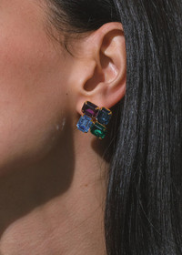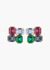 Inspired by Cubist painters, the Piccolo Earrings are a play on color and form, featuring emerald-cut stones in a mosaic-like arrangement. Made by hand in New York, the fine Austrian crystals are prong-set in an 18-karat gold-plated setting. We love that these earrings can be dressed up or down in a variety of looks. Dimensions: 3/4in x 3/4in Material The Piccolo Earrings are made by hand in New York from 18K gold plated brass and Austrian crystals. They have a surgical-steel post, are nickel-free, and safe for sensitive skin. We recommend storing earrings in their dust bag while not in use, and avoiding contact with water, perfume, hairspray, and other chemicals.