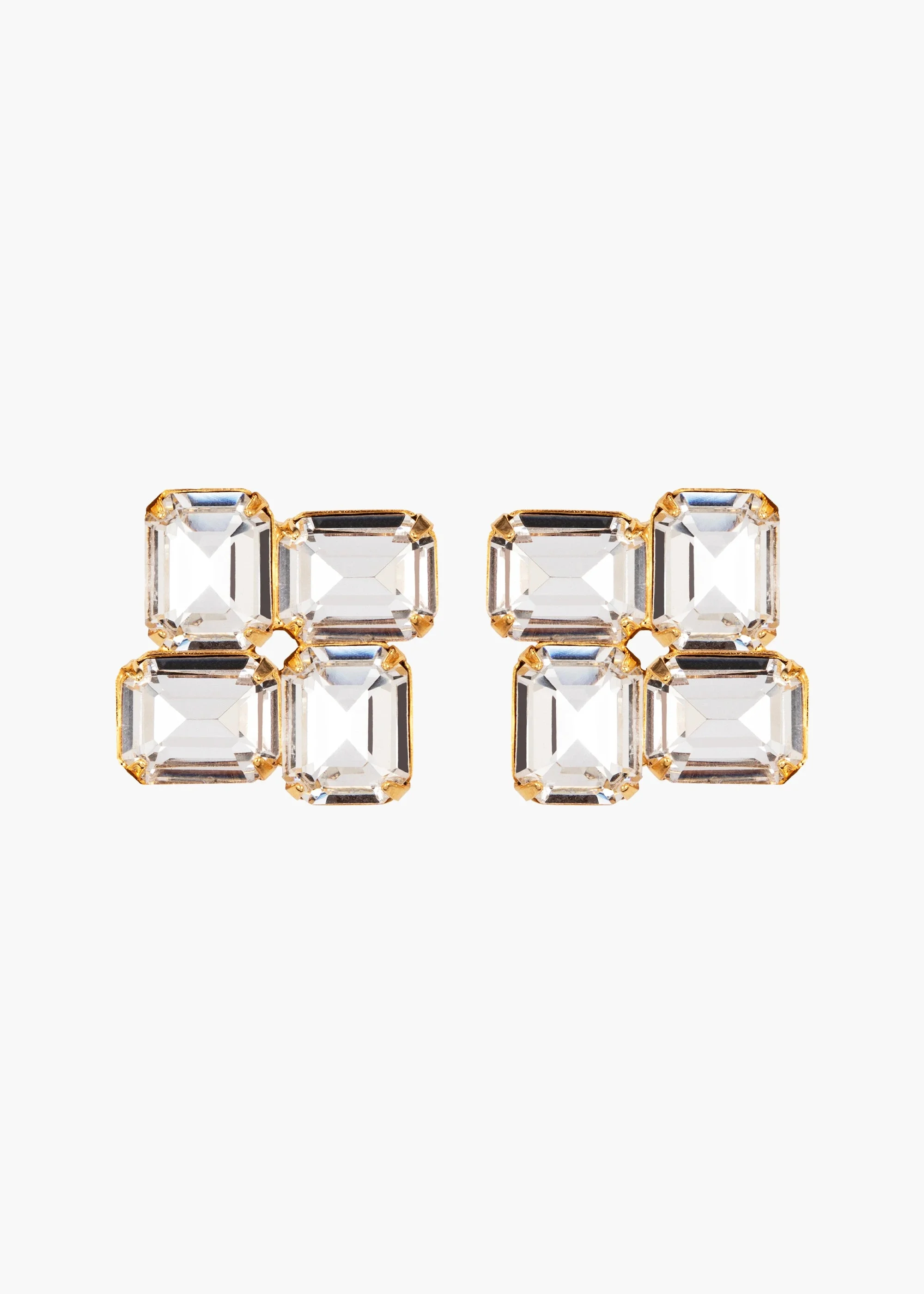 Inspired by Cubist painters, the Piccolo Earrings are a play on color and form, featuring emerald-cut stones in a mosaic-like arrangement. Made by hand in New York, the fine Austrian crystals are prong-set in an 18-karat gold-plated setting. We love that these earrings can be dressed up or down in a variety of looks. Dimensions: 3/4in x 3/4in Material The Piccolo Earrings are made by hand in New York from 18K gold plated brass and Austrian crystals. They have a surgical-steel post, are nickel-free, and safe for sensitive skin. We recommend storing earrings in their dust bag while not in use, and avoiding contact with water, perfume, hairspray, and other chemicals.