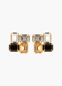 Inspired by Cubist painters, the Piccolo Earrings are a play on color and form, featuring emerald-cut stones in a mosaic-like arrangement. Made by hand in New York, the fine Austrian crystals are prong-set in an 18-karat gold-plated setting. We love that these earrings can be dressed up or down in a variety of looks. Dimensions: 3/4in x 3/4in Material The Piccolo Earrings are made by hand in New York from 18K gold plated brass and Austrian crystals. They have a surgical-steel post, are nickel-free, and safe for sensitive skin. We recommend storing earrings in their dust bag while not in use, and avoiding contact with water, perfume, hairspray, and other chemicals.