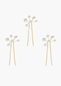 The Primavera Hair Pins were inspired by the ethereal essence of a Botticelli painting. Each pin in this set of three is comprised of numerous Swarovski pearls, which are meticulously strung by hand in our Brooklyn studio, creating a diaphanous spray of pearls with the illusion they're floating in midair. Consider pairing with the matching Primavera Circlet, or mixing with the Perla Bobby Pins. Packaging Dimensions: 6.5 x 6.5 x 1.75 inches Weight: Material The Primavera Hair Pins are a set of three, handmade in New York of Swarovski pearls on a durable steel bobby pin, designed to stay firmly in place, once other pins have the hairstyle securely fastened. We recommend treating each pin as you would a piece of jewelry, and storing in the dust bag when not in use. Avoid contact with water, perfume, and other chemicals, including hairspray, which should be used before placement in the hair.